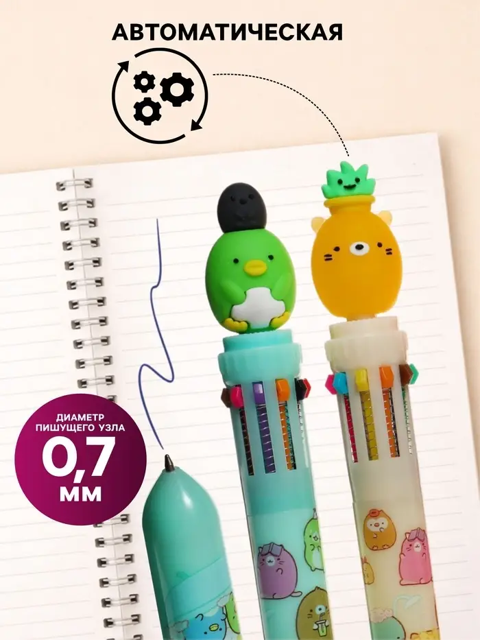Десятицветная автоматическая ручка «Милашки» — это яркий набор для творческого оформления записей и игрового обучения. Десять стержней с разноцветными чернилами в одном корпусе помогают создавать красочные схемы, рисунки и системы пометок, превращая рутинные записи в увлекательный процесс.