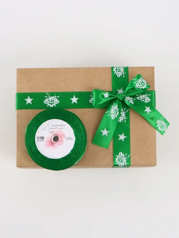 Лента атласная «23 февраля», 2.5 см × 18 (± 1) м, зелёная
