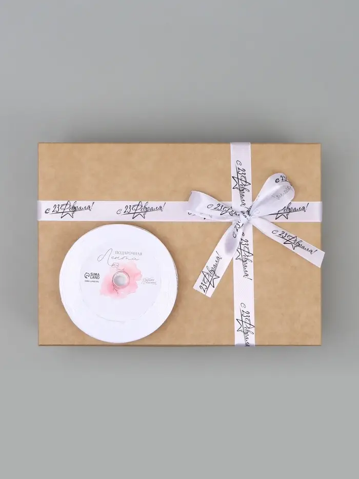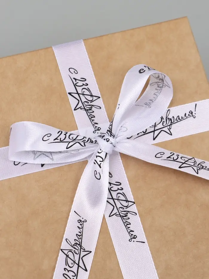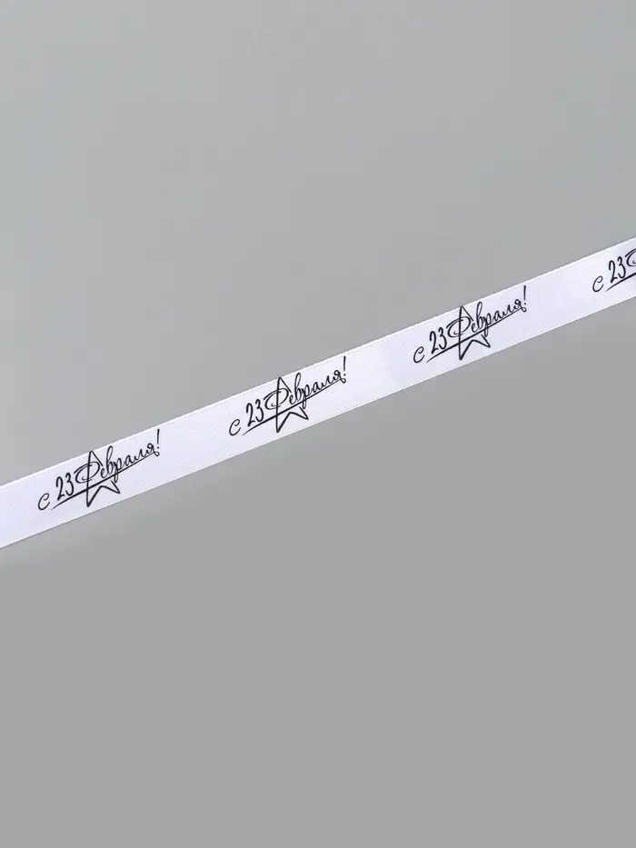 Лента атласная «С 23 Февраля!», 1.5×22.5 (± 1) м, белая