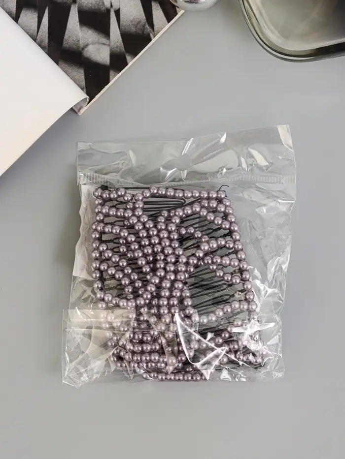Зажим для волос «Сетка», бусины, 8×7 см, белый