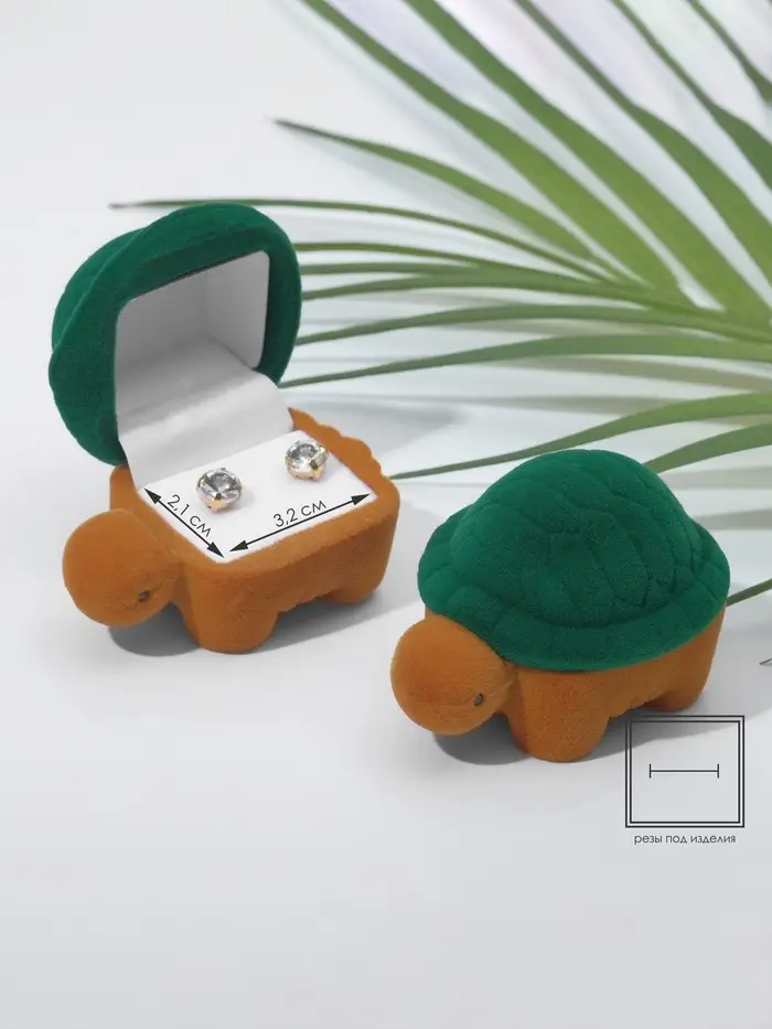 Футляр бархатный под серьги/кольцо «Черепашка», 4,2×6,8×4,9 см, цвет зелено-коричневый, вставка белая — это элегантный и стильный аксессуар для хранения и презентации ювелирных изделий. Бархатная текстура придает футляру роскошный вид, а форма черепашки добавляет оригинальности и индивидуальности.
