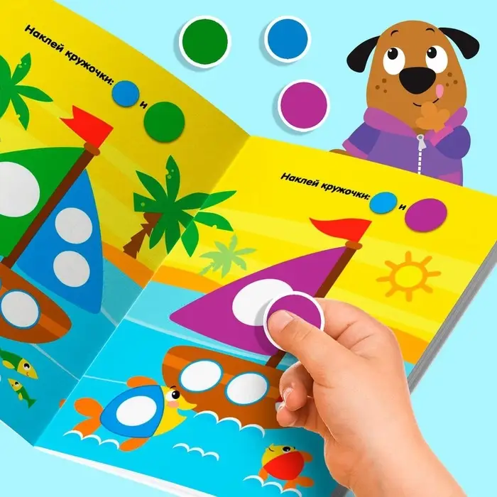 Занятия с наклейками развивают усидчивость, наклейки круглой формы наиболее удобны для маленьких пальчиков.