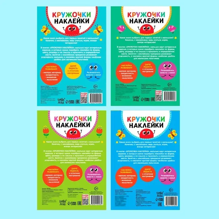 Наклейки обучающие «Весёлые кружочки», набор 4 шт. по 16 стр., А4