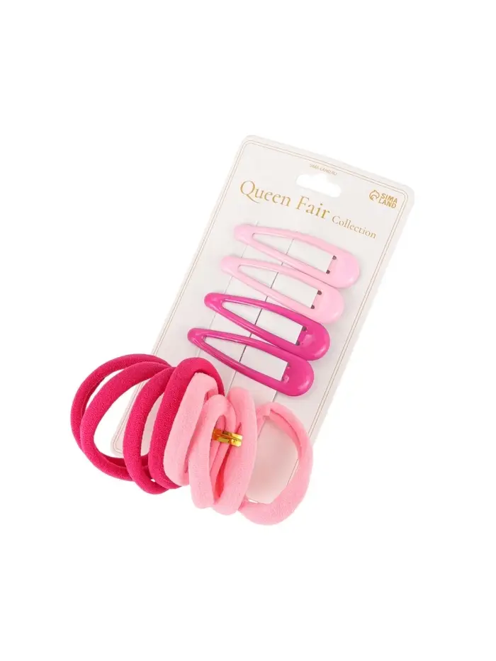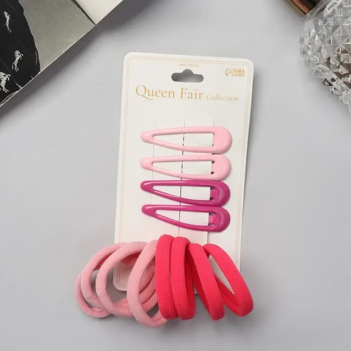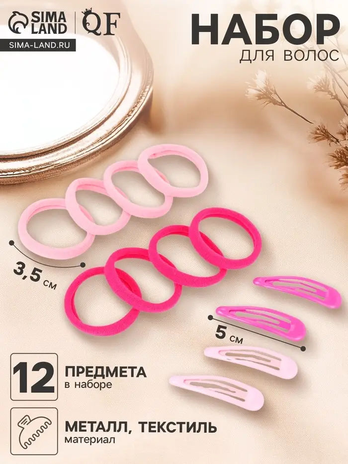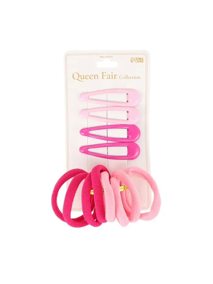 Набор для волос QF «Мира», 12 шт.: 4 невидимки 5 см, 8 резинок 3.5 см, розовый