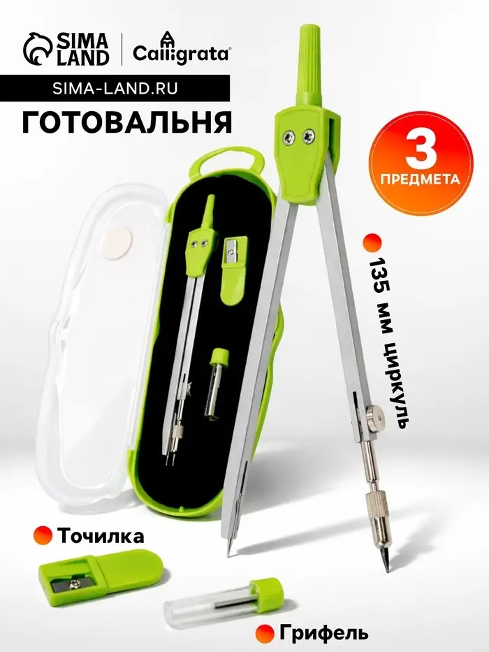 Готовальня Calligrata, 3 предмета (циркуль 135 мм, грифель, точилка), в пластиковом пенале
