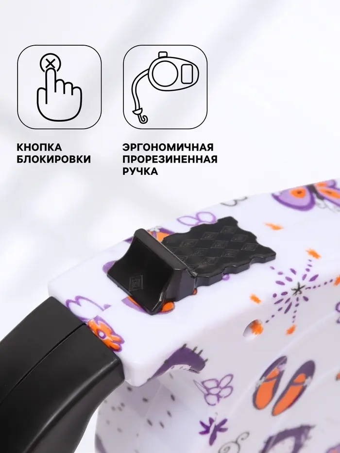 Рулетка с поводком-лентой, резиновая ручка, 5 м, вес животного до 15 кг, узоры на белом