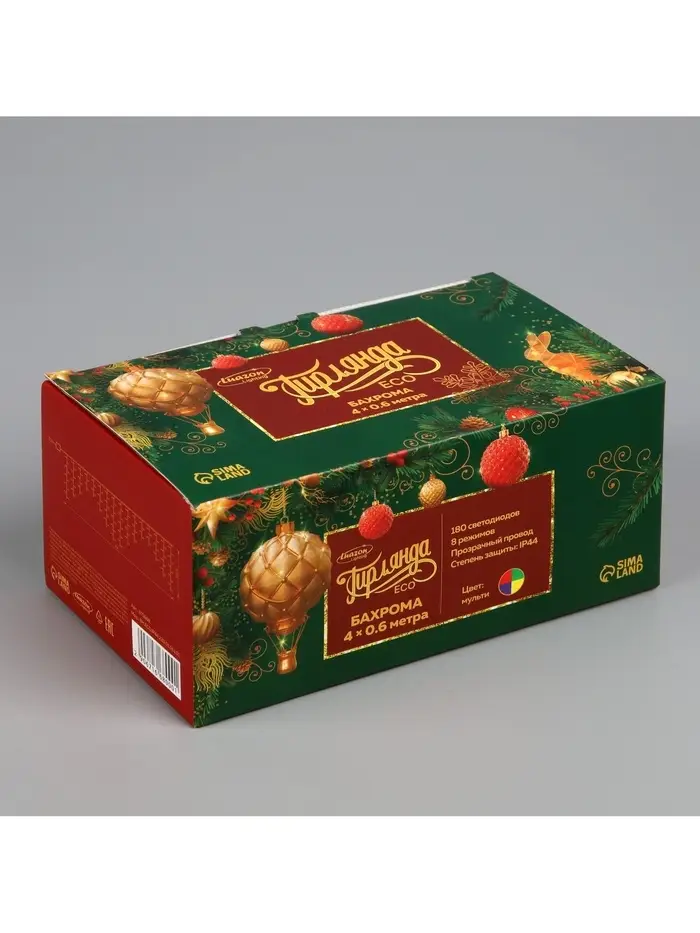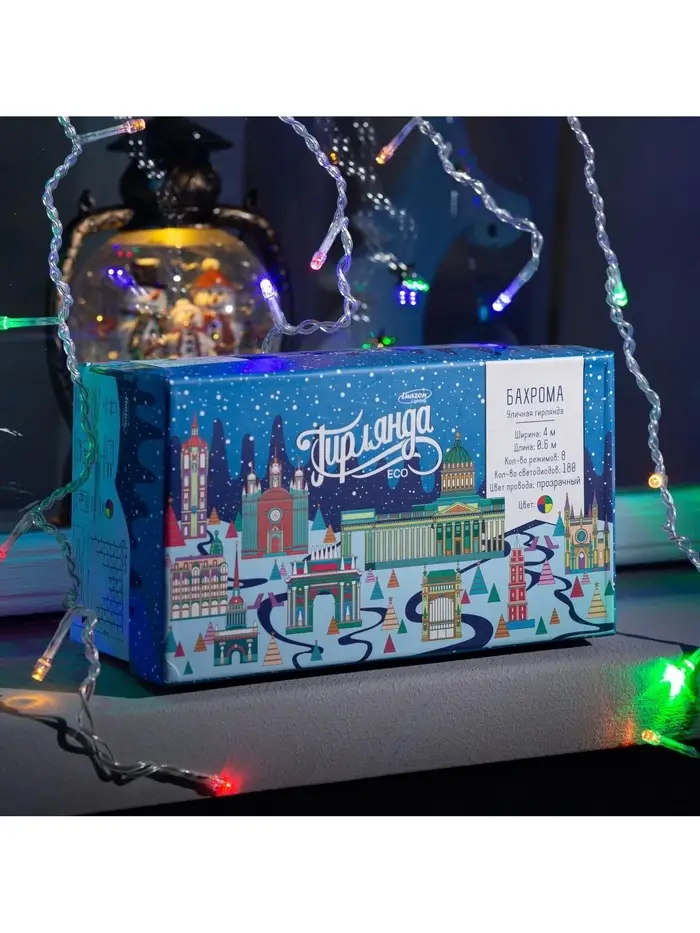 Гирлянда «Бахрома» 4×0.6 м, IP44, прозрачная нить, 180 LED, свечение мульти, 8 режимов, 220 В