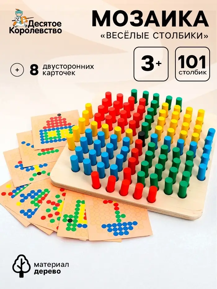 Мозаика деревянная Десятое Королевство «Весёлые столбики»