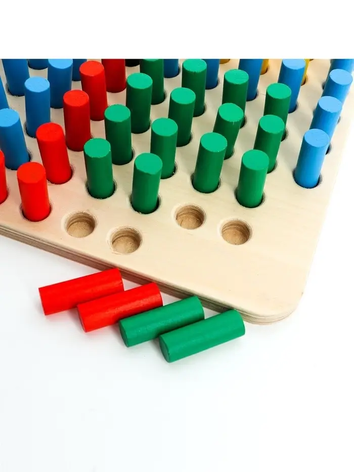 Развивайте логику и мелкую моторику с развивающей игрой из дерева «Весёлые столбики». Выполняйте задания на карточках и расставляйте столбики в нужном порядке на игровом поле!