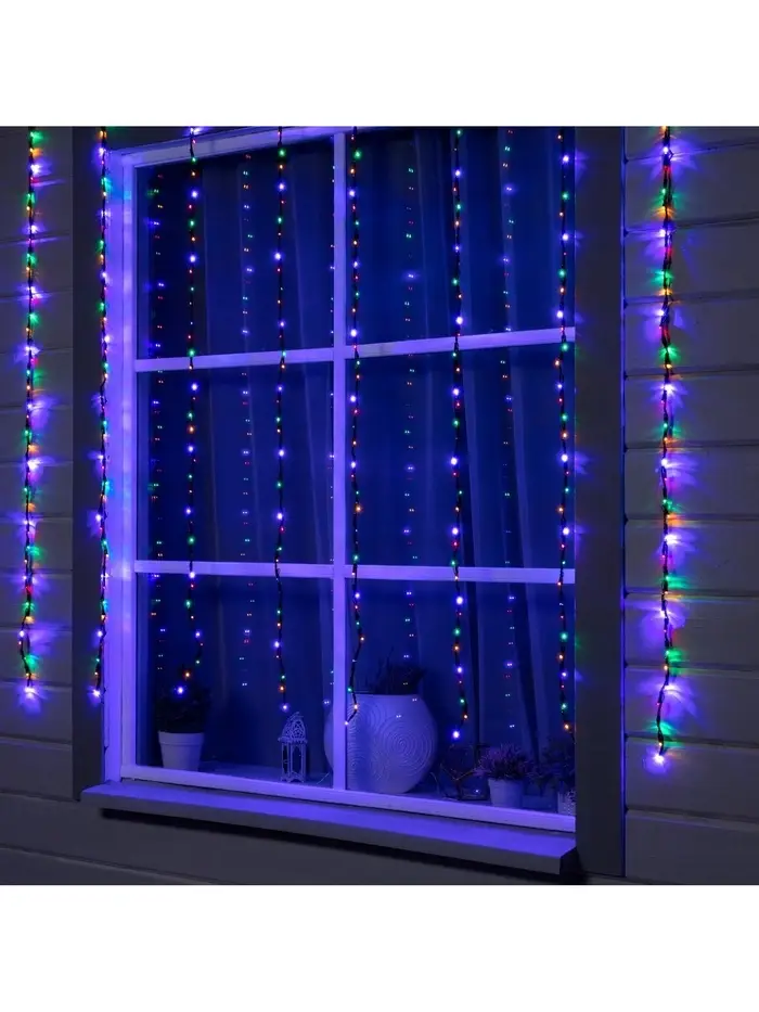 Гирлянда «Водопад» 2×1.5 м, IP44, тёмная нить, 400 LED, свечение мульти, 8 режимов, 220 В
