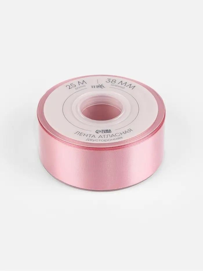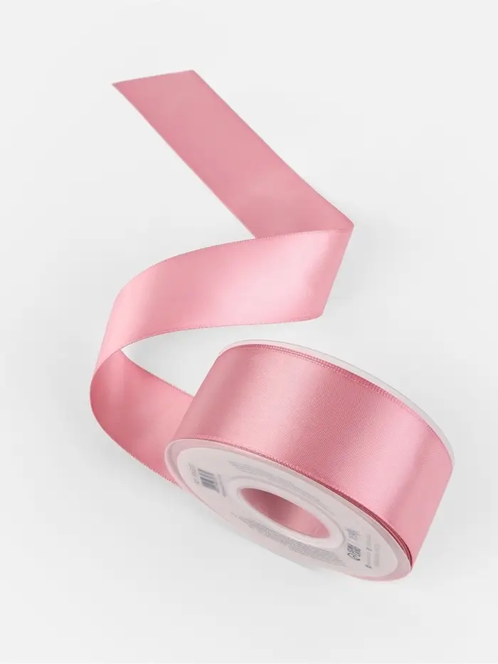 Лента атласная TEIRA, двухсторонняя, 38 мм, 25±1 м, розовая №158