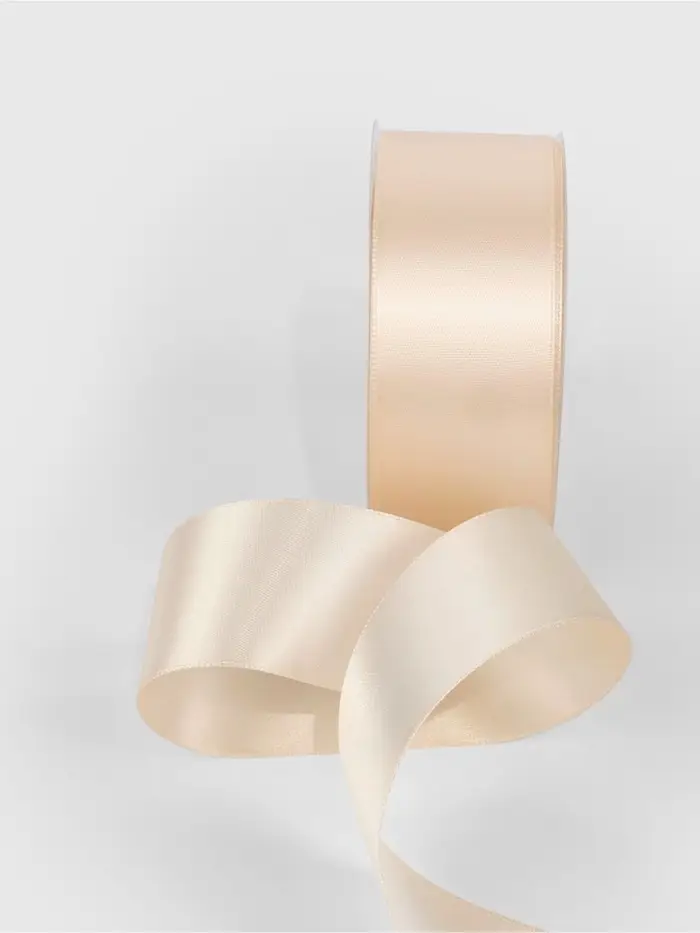 С кремовым внешним видом и премиальной двусторонней текстурой, лента легко трансформируется в аккуратные узелки и пышные банты, сохраняя при этом прочность и презентабельность.