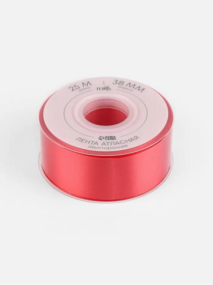Лента атласная TEIRA, двухсторонняя, 38 мм, 25±1 м, красная №0250