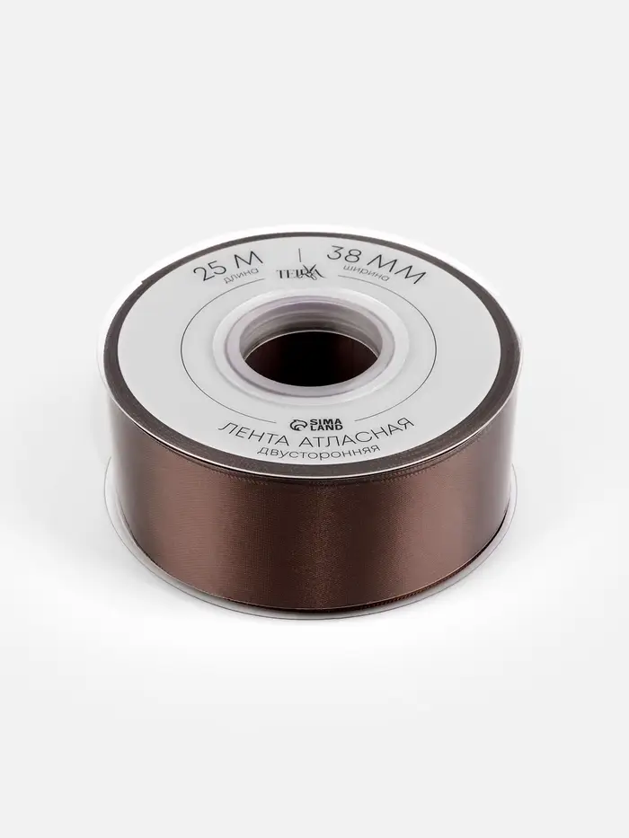 Лента атласная TEIRA, двухсторонняя, 38 мм, 25±1 м, коричневая №330