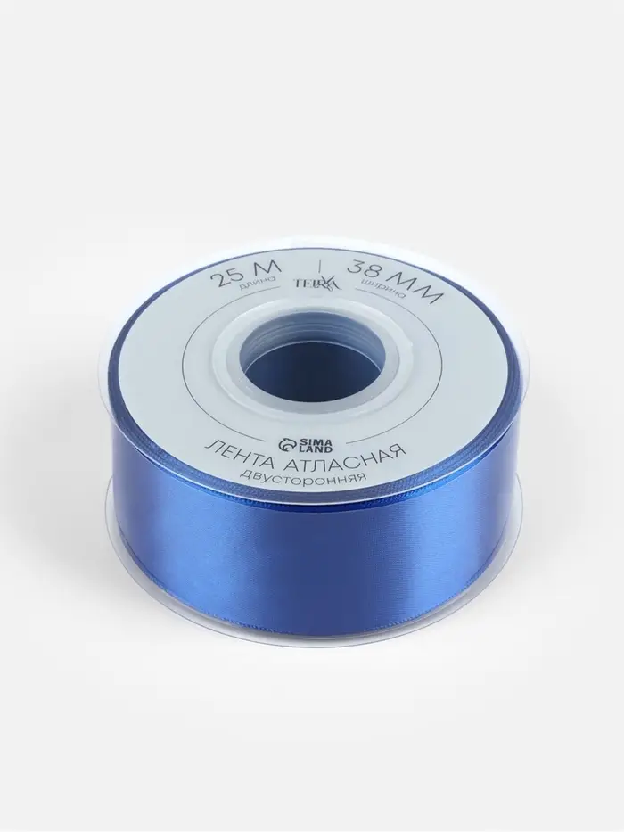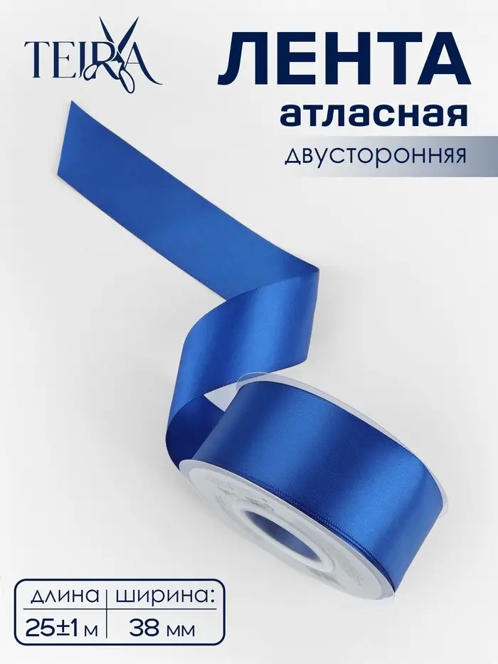 Лента атласная TEIRA, двухсторонняя, 38 мм, 25±1 м, синяя №0329