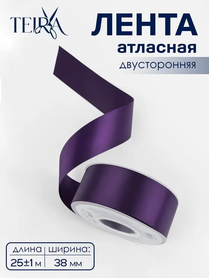 Лента атласная TEIRA, двухсторонняя, 38 мм, 25±1 м, фиолетовая №476