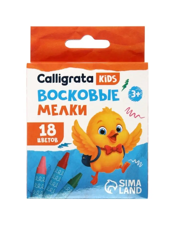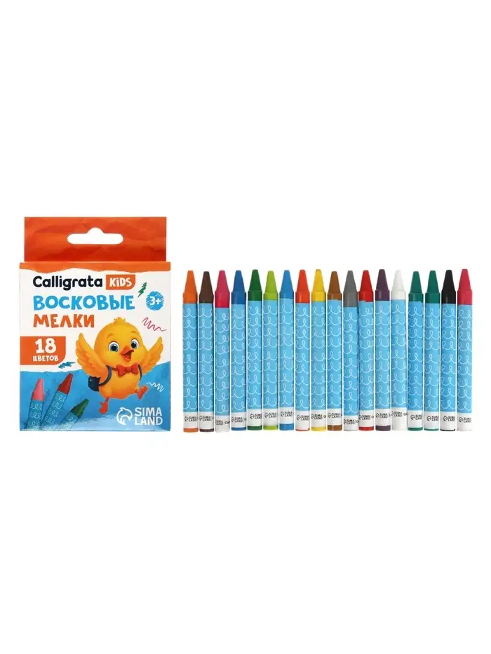 Карандаши восковые 18 цветов, 78×8 мм, Calligrata, в картонной коробке