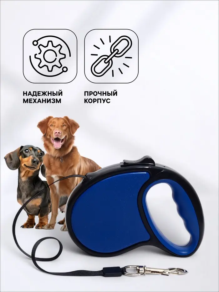 Рулетка «Стиль», под кожу, 5 м, вес животного до 25 кг, чёрно-синяя