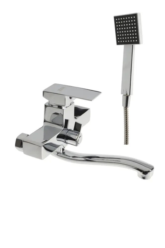 Смеситель для ванны ZEIN Z0155, кран-букса 1/2", душевая лейка и шланг, хром