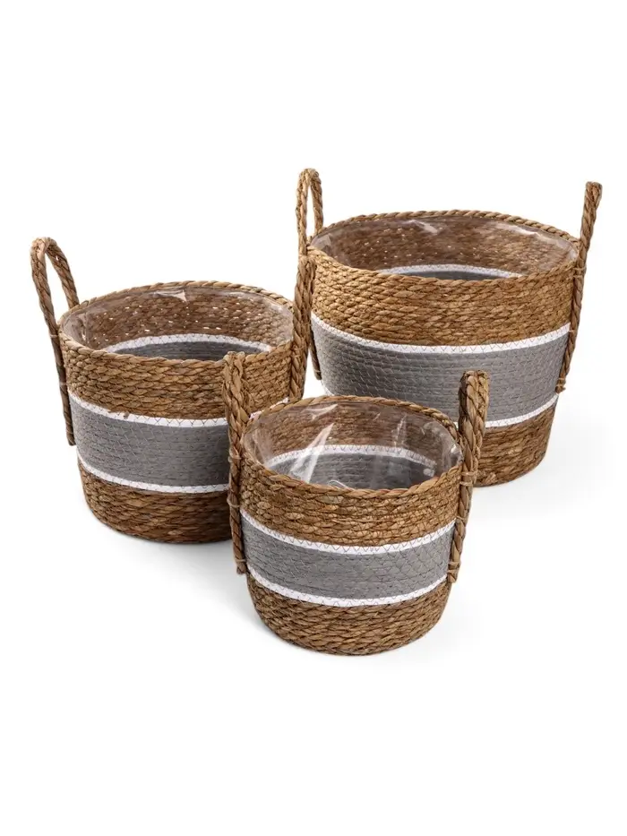 Кашпо плетёное для цветов «Инга», коричнево-серое, набор 3 шт.