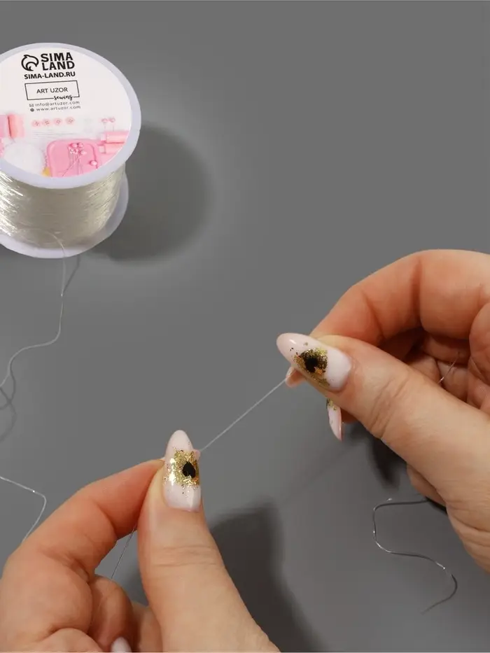 Благодаря диаметру всего 0.4 мм и длине 100±1 м, этот материал предоставляет неограниченные возможности для создания ювелирно точных работ. Её прозрачность позволяет сделать основу практически невидимой, акцентируя внимание на красоте используемых бусин или камней.
