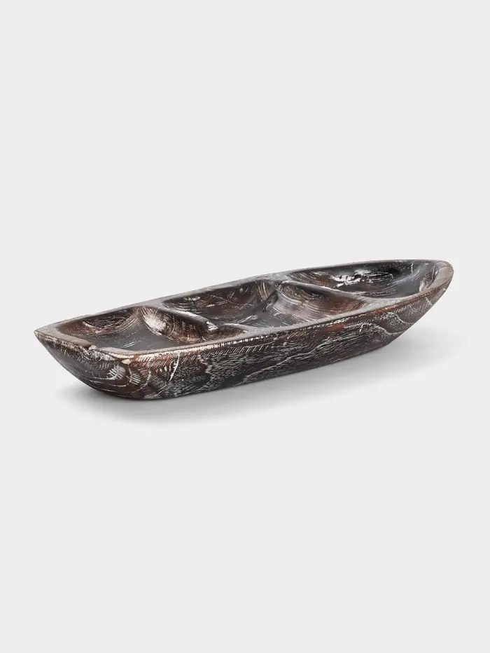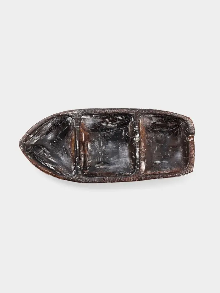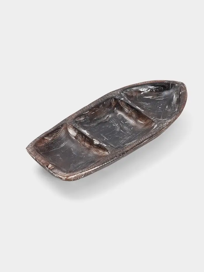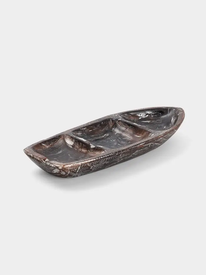 Элегантность морской стихии на вашем столе. Деревянная менажница «Лодочка» на три ячейки – это практичный и атмосферный аксессуар для сервировки. Изделие из массива дерева джати в форме стилизованной лодки придает сервировке индивидуальность и теплоту натуральных материалов.