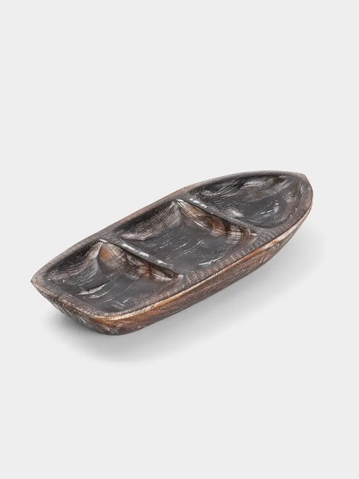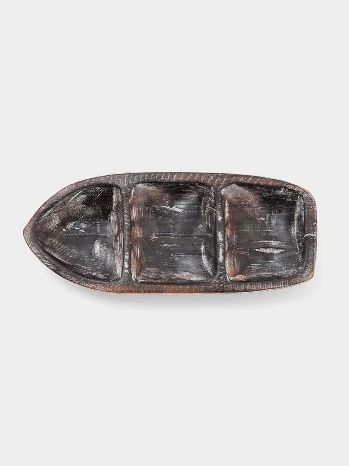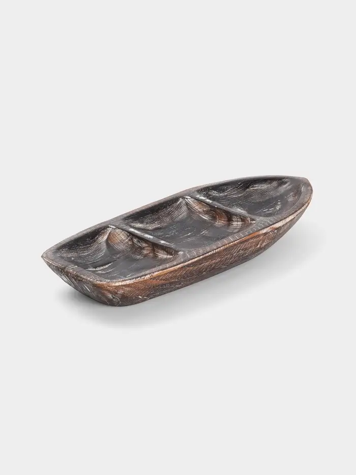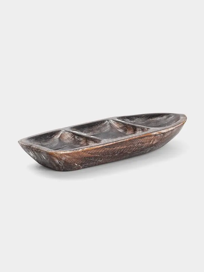Стильная и практичная сервировка для вашего стола! Деревянная менажница «Лодочка» на три ячейки — это оригинальный акцент для морского или классического интерьера. Изделие из массива джати сочетает в себе природную теплоту дерева, прочность и функциональность для красивой подачи закусок, десертов или соусов.