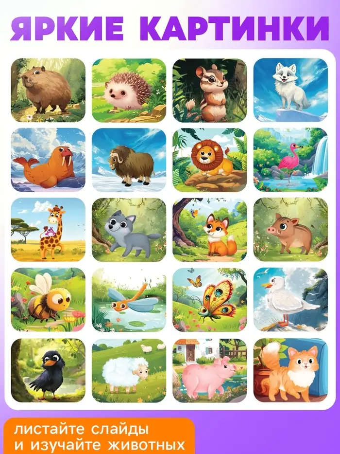 - 72 карточки с интересными карточками и животных.