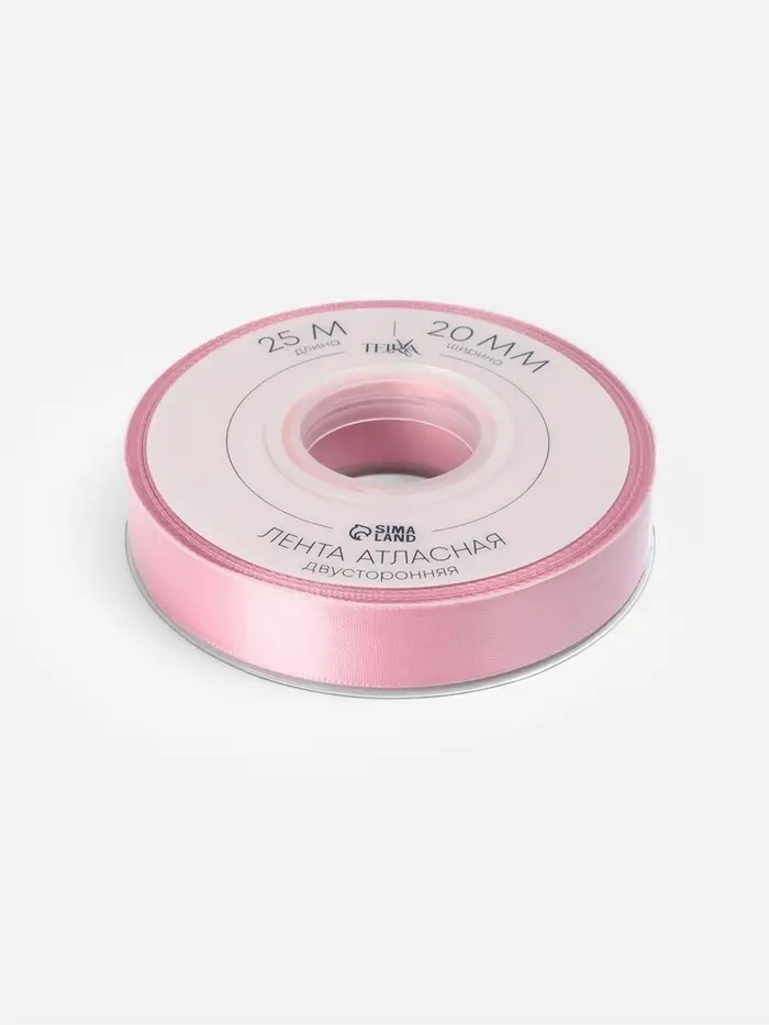 Лента атласная TEIRA, двухсторонняя, 20 мм, 25±1 м, розовая №158
