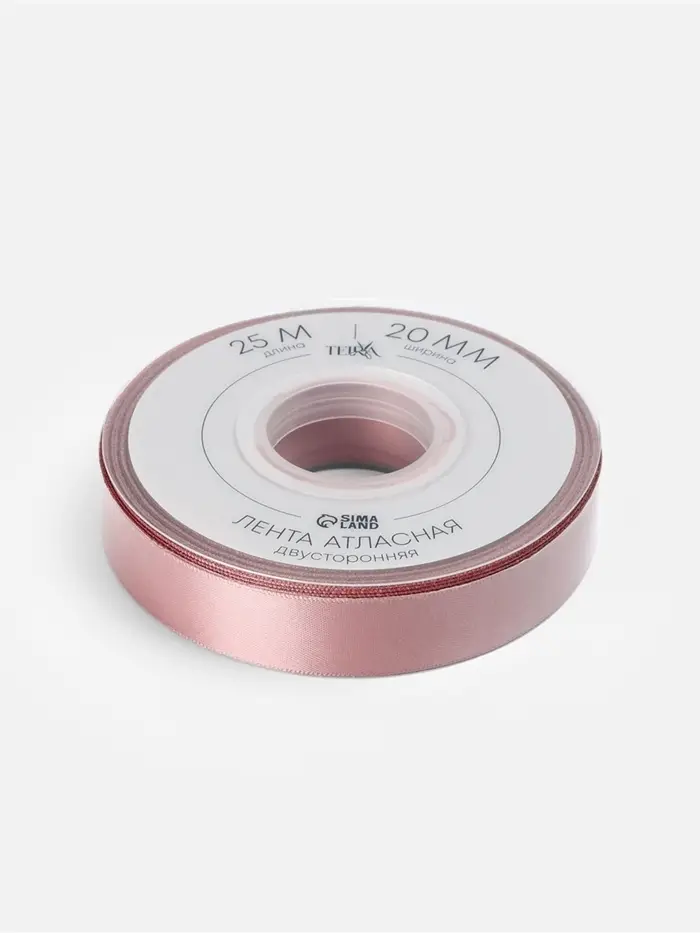 Лента атласная TEIRA, двухсторонняя, 20 мм, 25±1 м, нежно-розовая №164