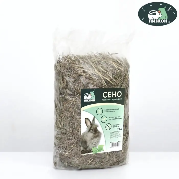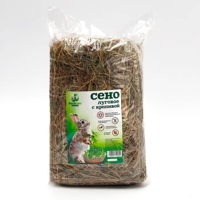 Луговое сено с крапивой для грызунов из 100% натуральных трав. Используется в качестве подстилки для грызунов: морских свинок, кроликов и шиншилл. Сено хорошо впитывает влагу и маскирует неприятные запахи.