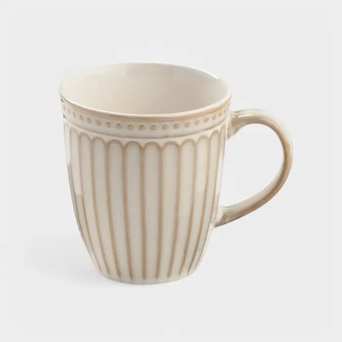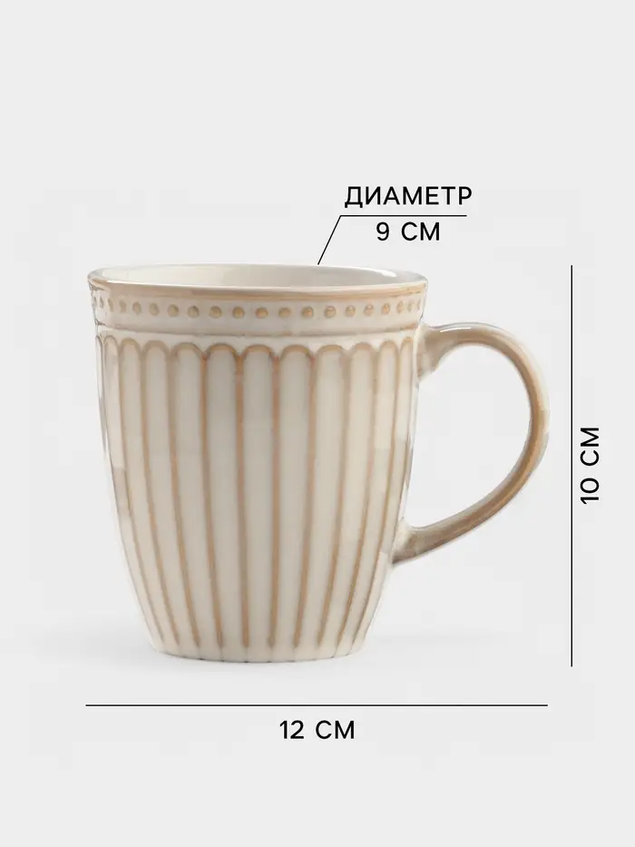 Кружки изготовлены из высококачественной керамики, что обеспечивает их долговечность и надёжность. Бежевый цвет и рельефная текстура придают им особый шарм, а узоры в винтажном стиле делают их универсальными для любого интерьера. Объём кружек в 350 мл делает их удобными для ежедневного использования.