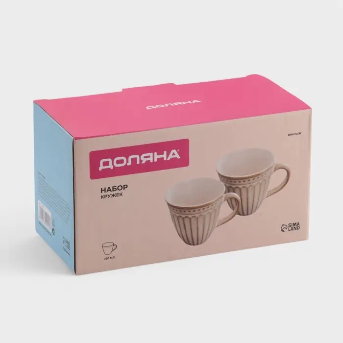 Набор кружек Доляна «Винтаж», 350 мл, набор 2 шт., керамика, бежевые