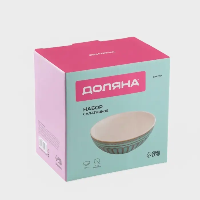 Салатники Доляна «Винтаж», d=15 см, набор 2 шт., керамика, бирюзовые