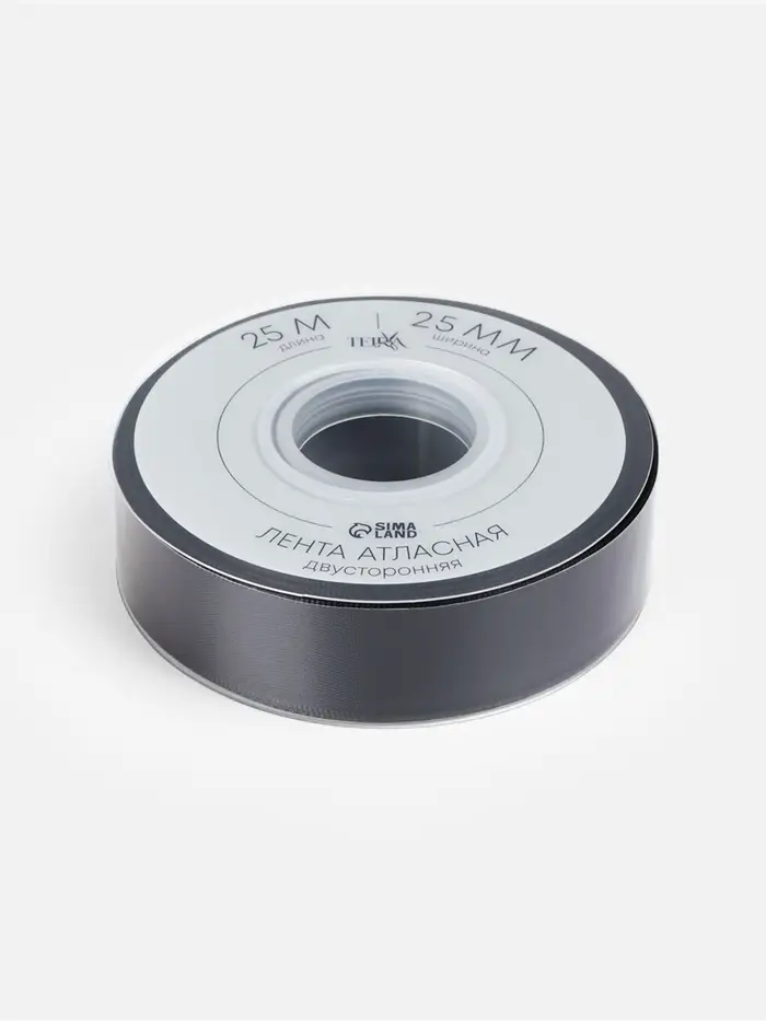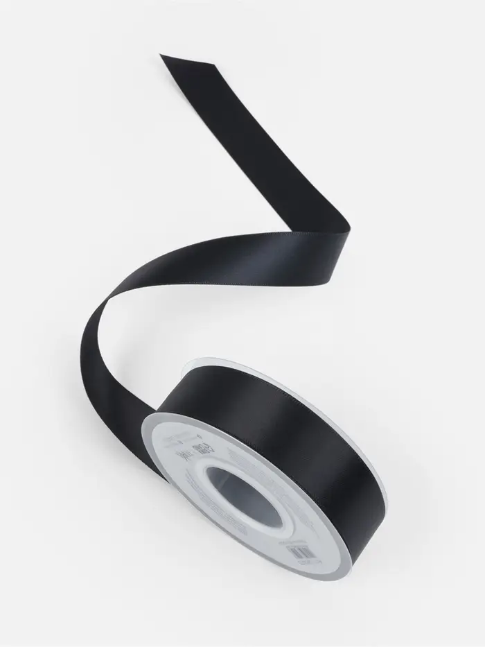 Лента атласная TEIRA, двухсторонняя, 25 мм, 25±1 м, чёрная №0030