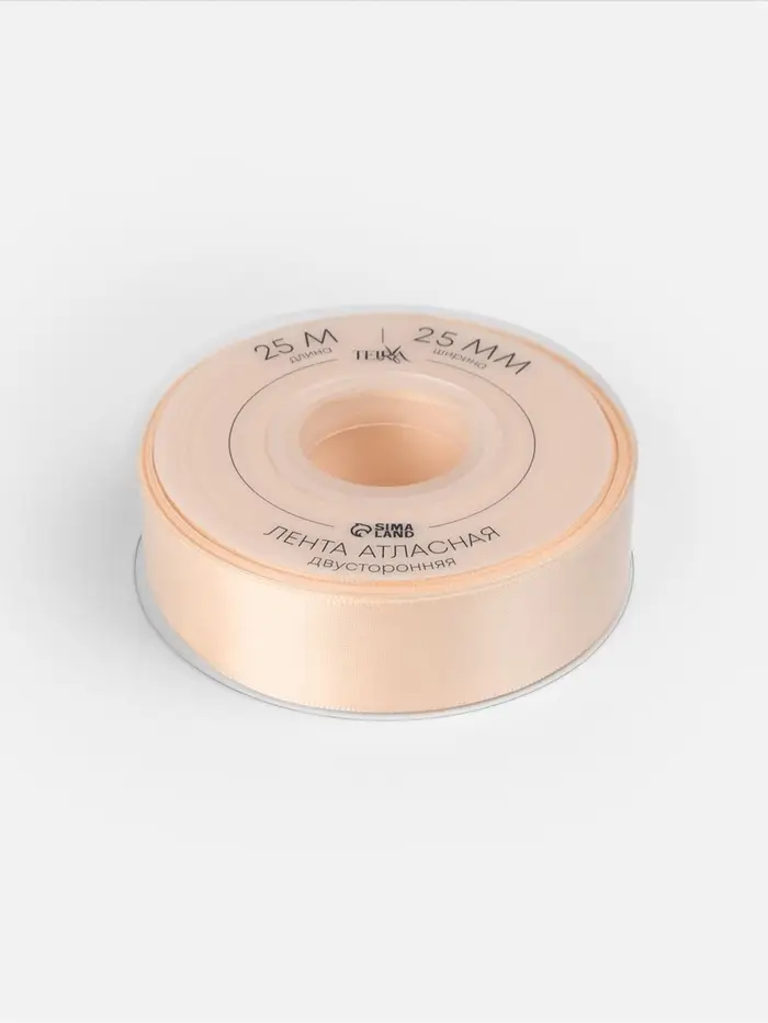Лента атласная TEIRA, двухсторонняя, 25 мм, 25±1 м, светло-бежевая №112