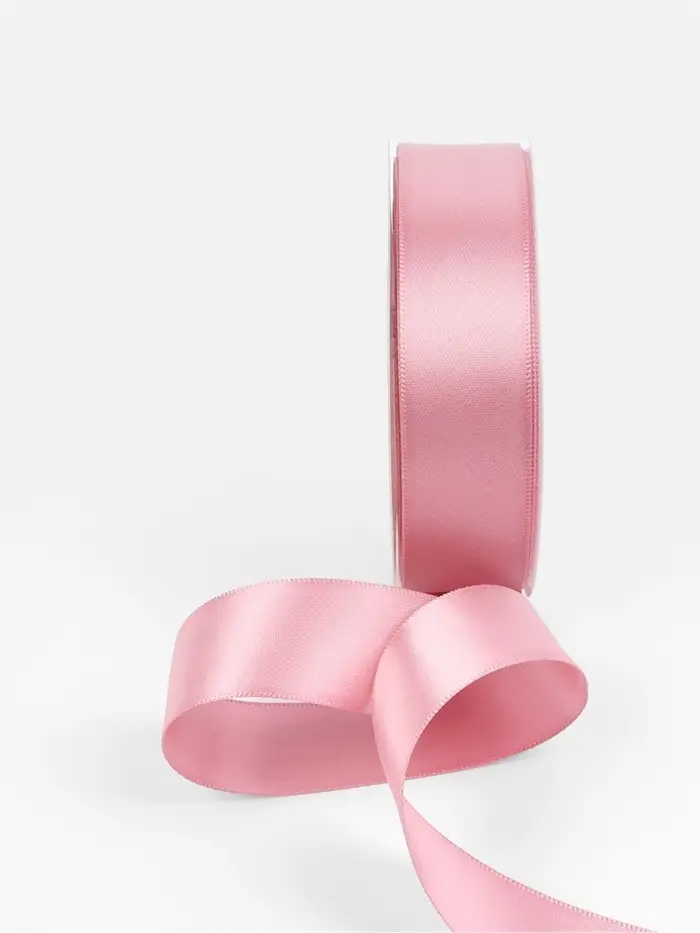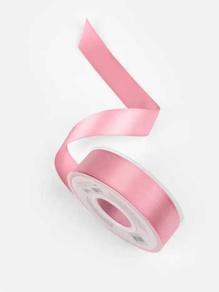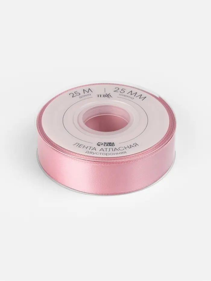 Лента атласная TEIRA, двухсторонняя, 25 мм, 25±1 м, розовая №158