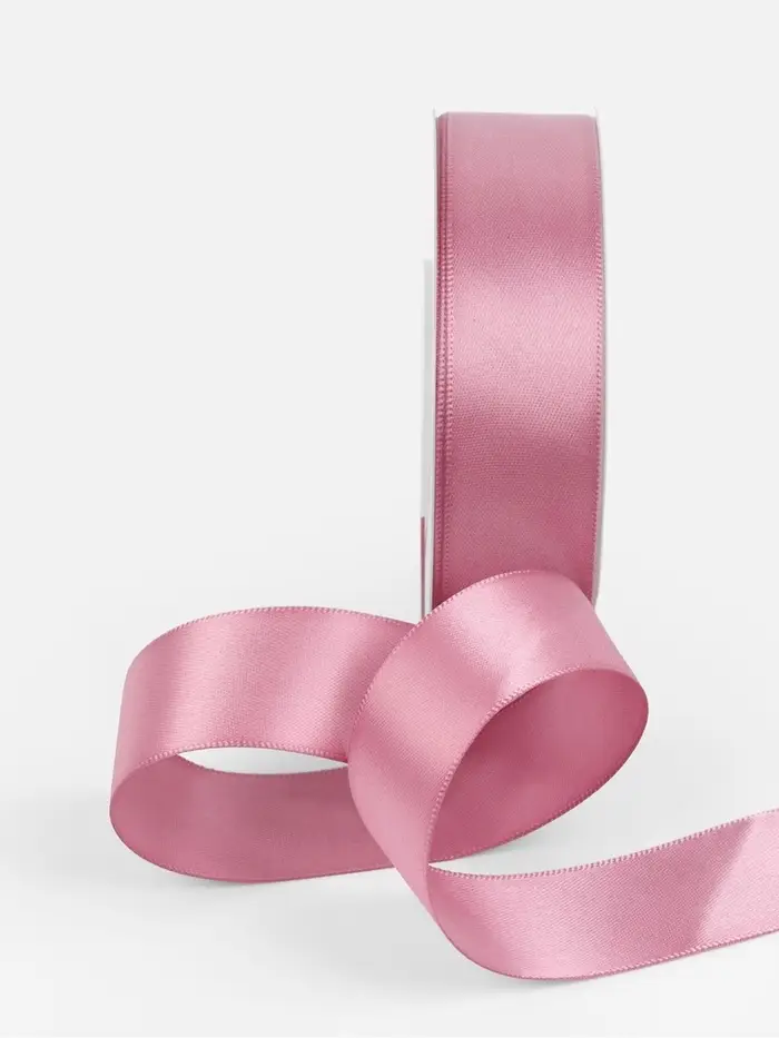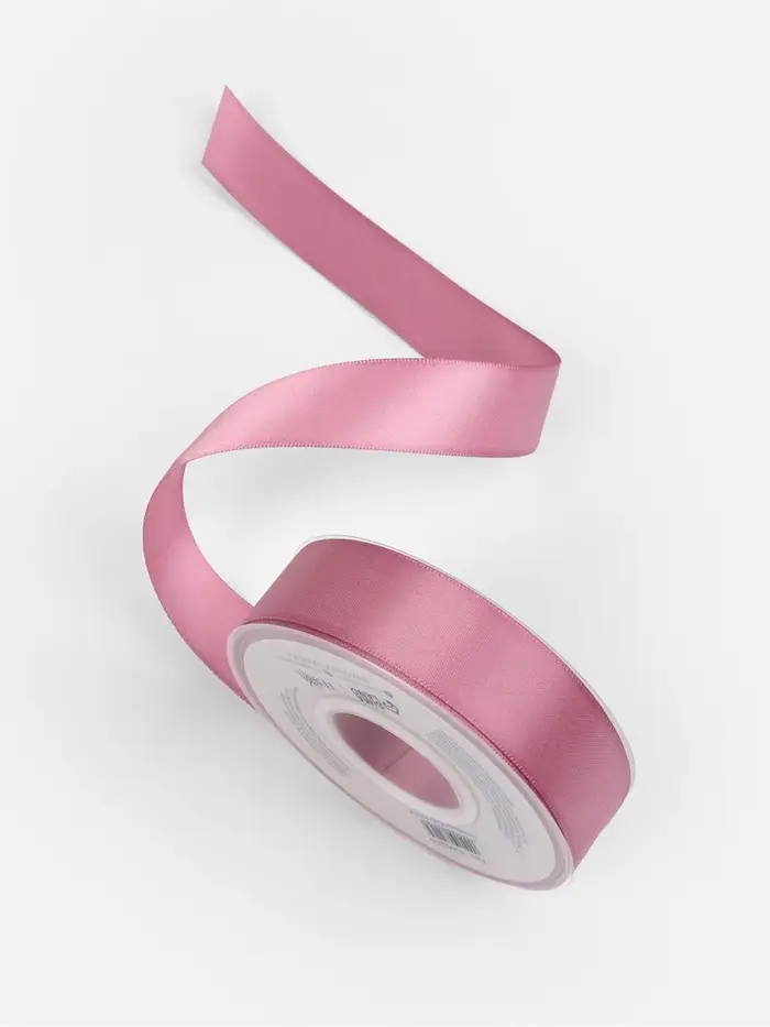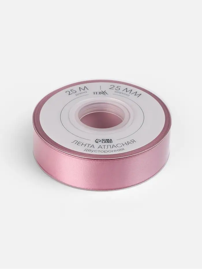 Лента атласная TEIRA, двухсторонняя, 25 мм, 25±1 м, розовая №165