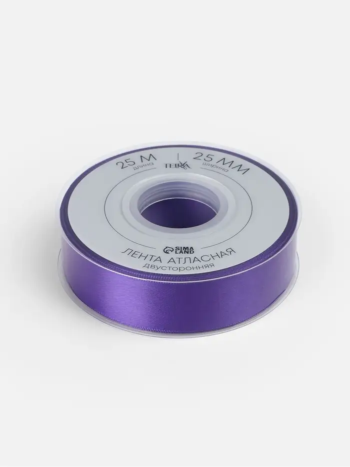 Лента атласная TEIRA, двухсторонняя, 25 мм, 25±1 м, фиолетовая №0470