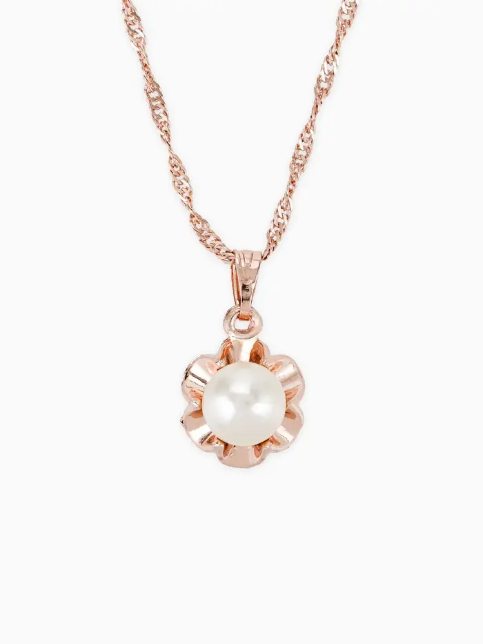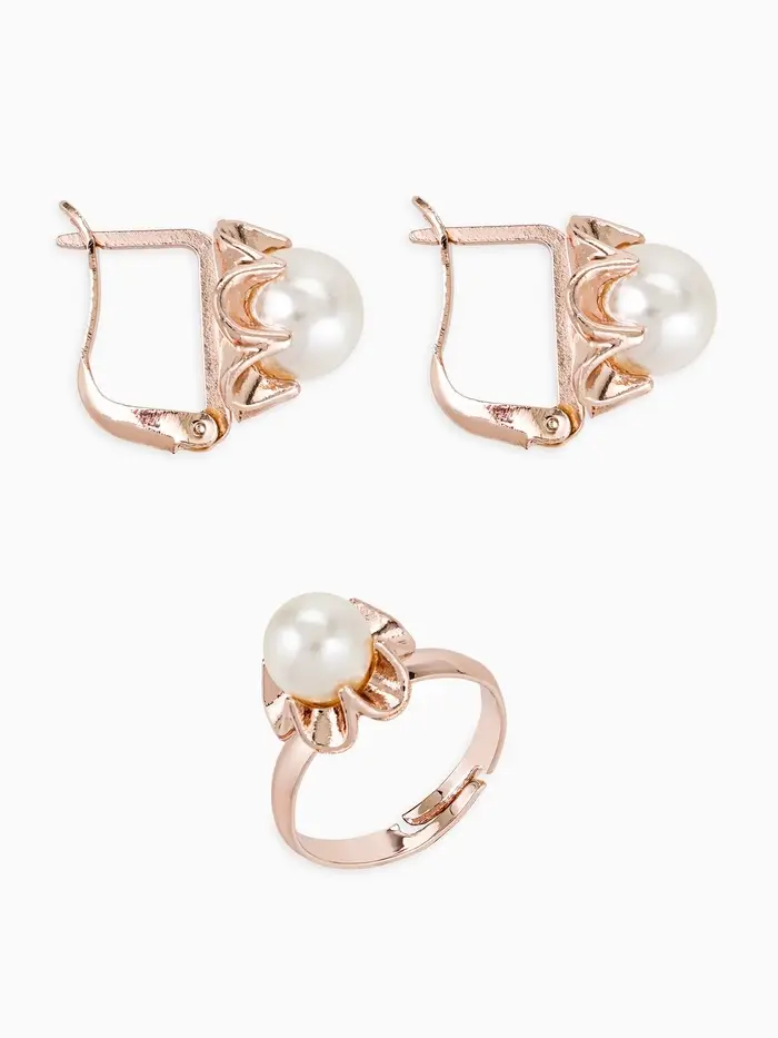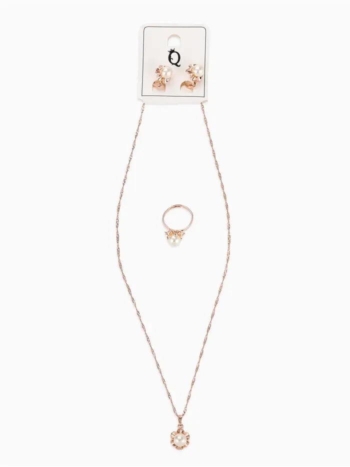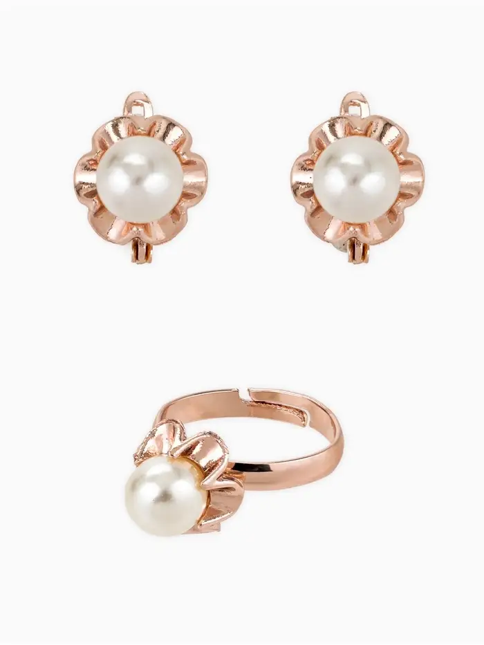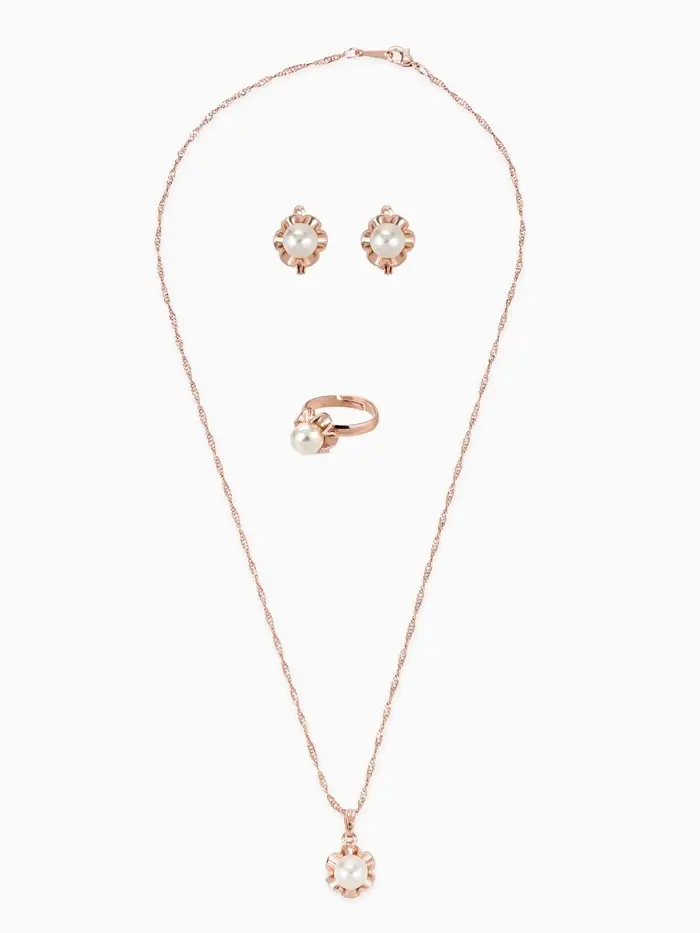 Гарнитур 3 предмета: серьги, кулон, кольцо безразмерное «Эдель», с жемчугом цветок, белые в золоте, 45 см
