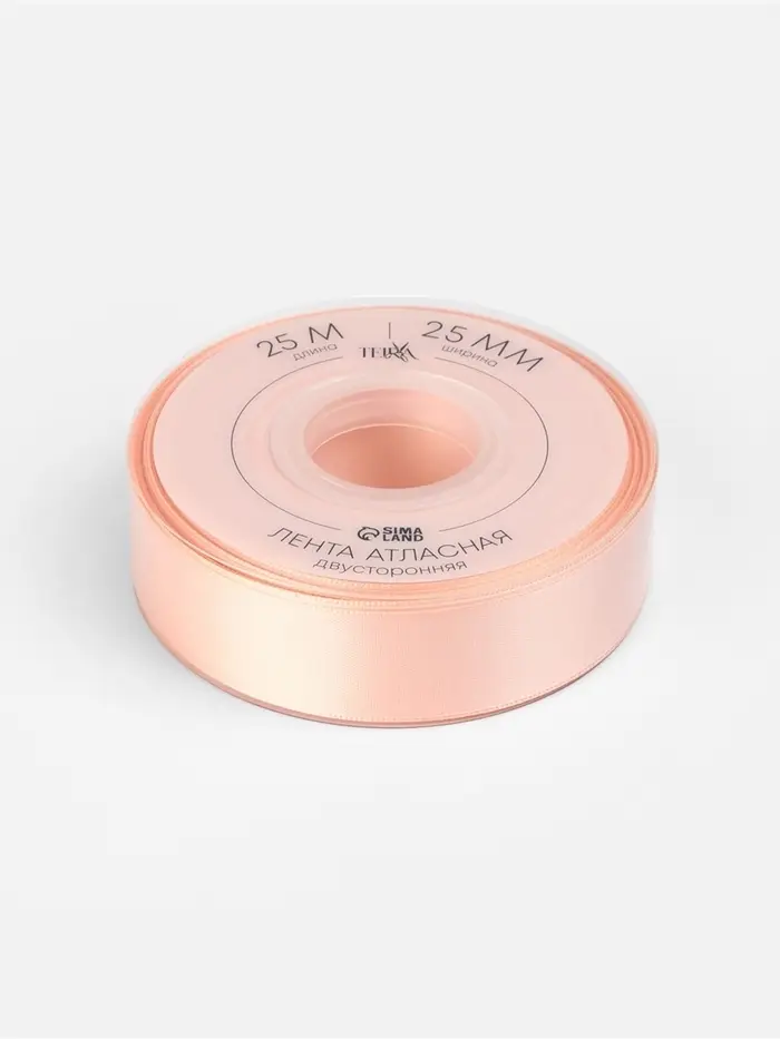 Лента атласная TEIRA, двухсторонняя, 25 мм, 25±1 м, бежевая №0714