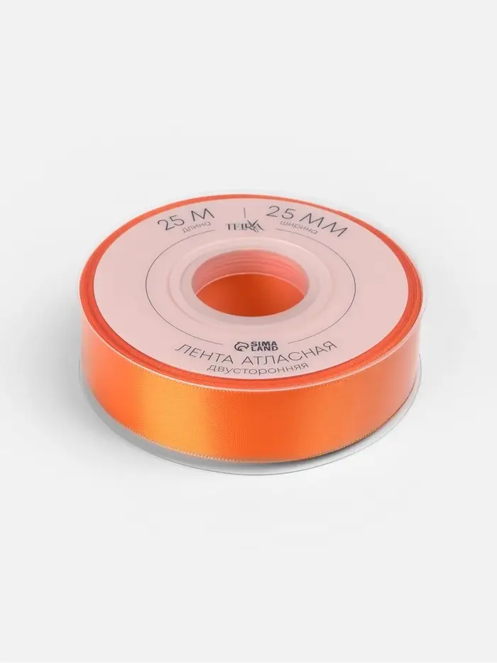 Лента атласная TEIRA, двухсторонняя, 25 мм, 25±1 м, оранжевая №751
