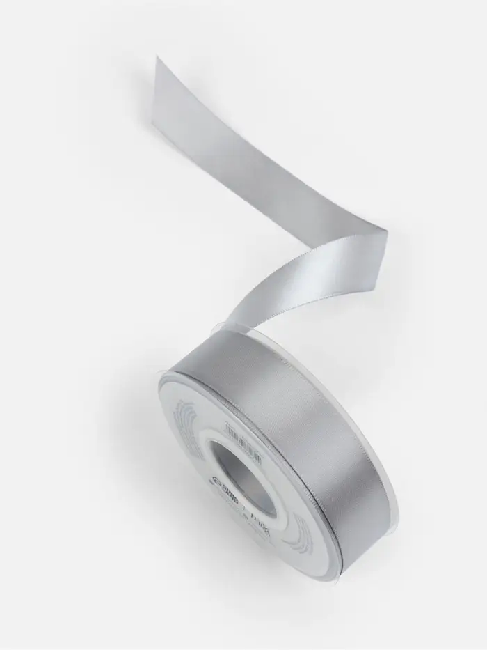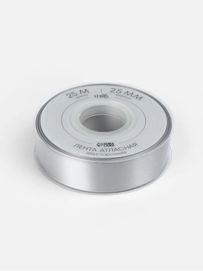 Лента атласная TEIRA, двухсторонняя, 25 мм, 25±1 м, цвет серебряный №837