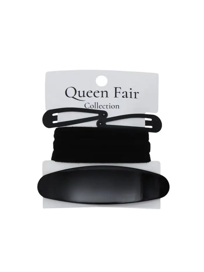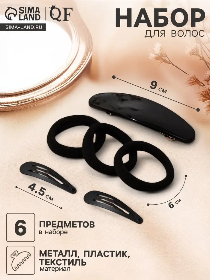 Набор для волос QF «Авиталь», 3 резинки 6 см, заколка - автомат 9 см, 2 заколки 4.5 см, чёрный