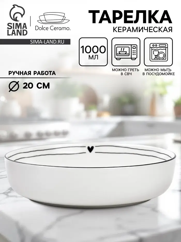 Тарелка суповая керамическая «С любовью», d=20 см, 1000 мл, ручная работа