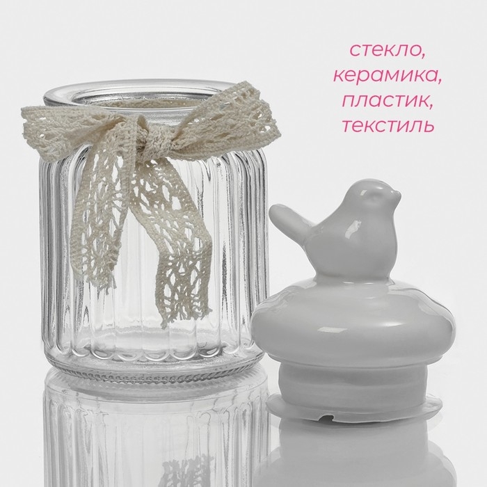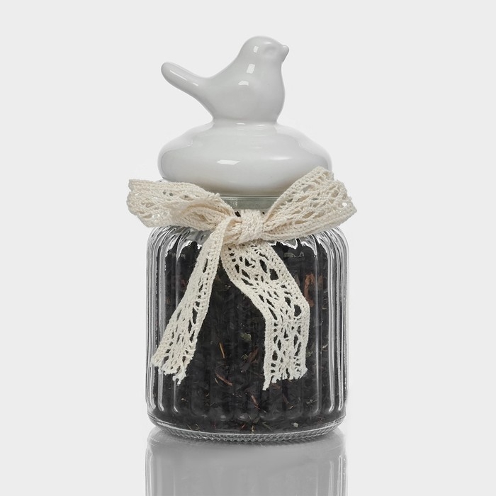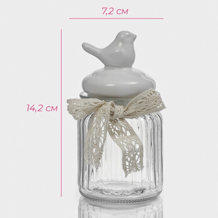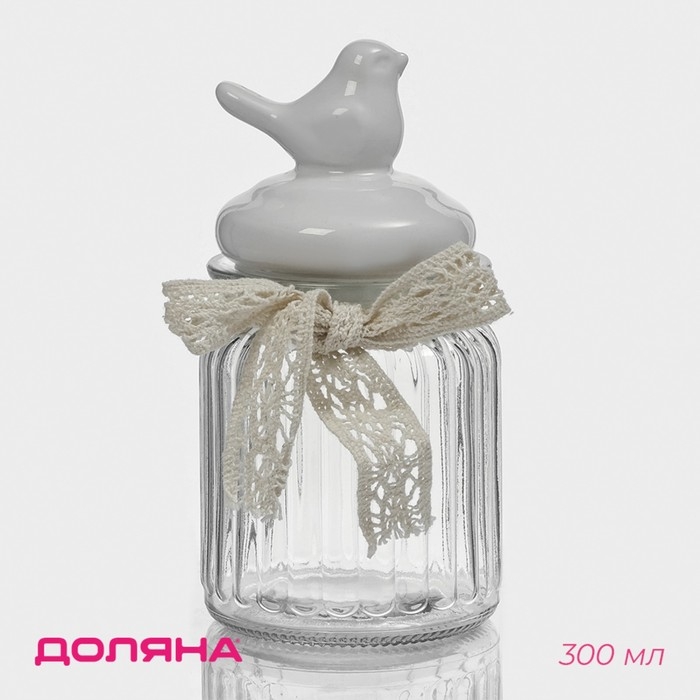 Банка стеклянная для сыпучих продуктов с керамической крышкой «Птичка», 300 мл, цвет белый