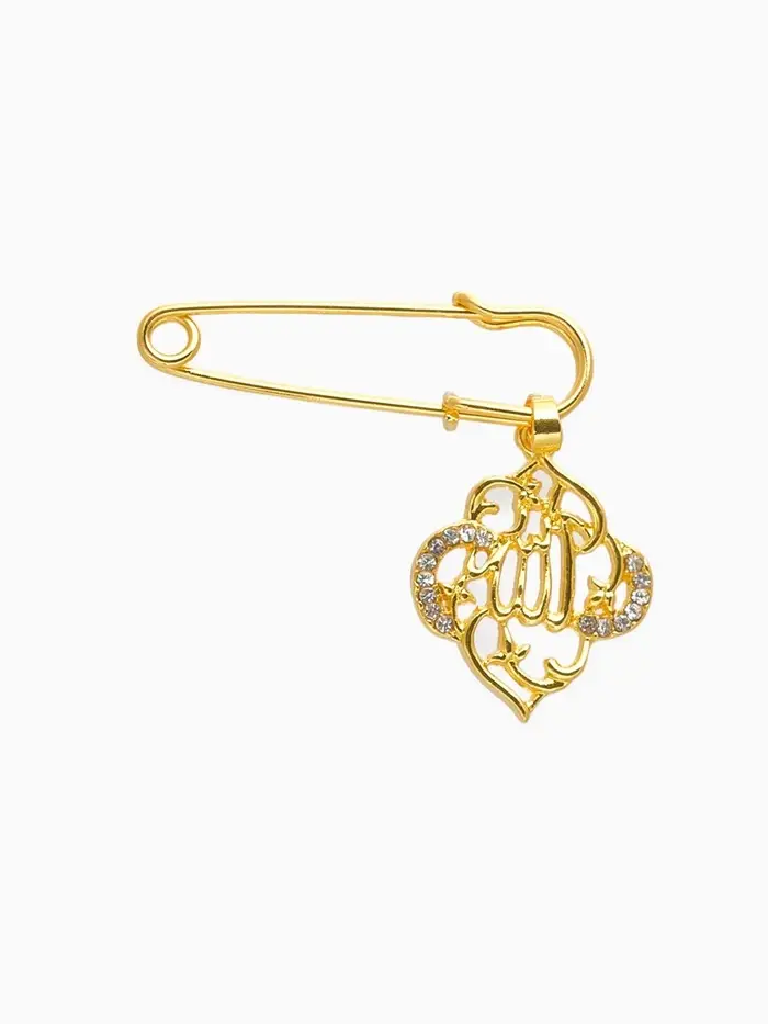 Данная булавка – настоящая находка для модниц, предпочитающих нетривиальные аксессуары. Брошь-булавка станет не только оригинальным дополнением вашего наряда, но и позволит без труда приколоть при необходимости палантин или шейный платок. Используйте её в качестве украшения шляпки, рубашки или галстука. Булавка с подвеской «Мусульманская» басмала, 3 см, цвет белый в золоте внесёт особую нотку изящности в ваш образ.