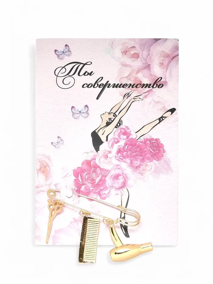 Булавка с подвесками в изысканном розовом золоте — это стильный аксессуар, который подчеркнёт индивидуальность и профессионализм парикмахера. Компактная длина 5,5 см делает украшение удобным для повседневного ношения, а металлическая основа гарантирует прочность и долговечность изделия.