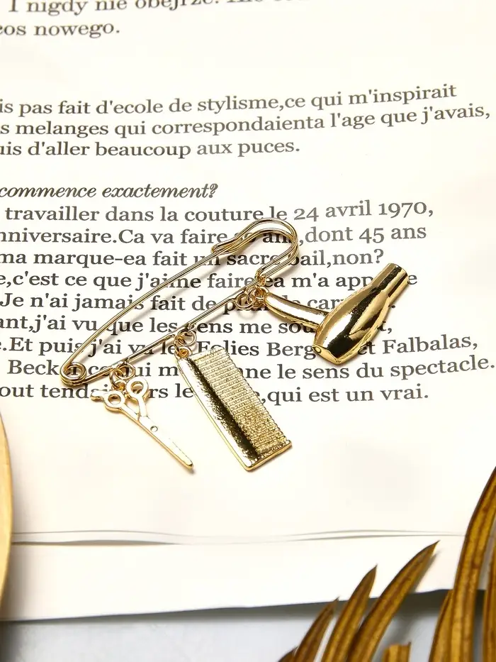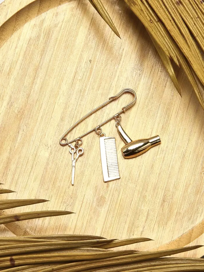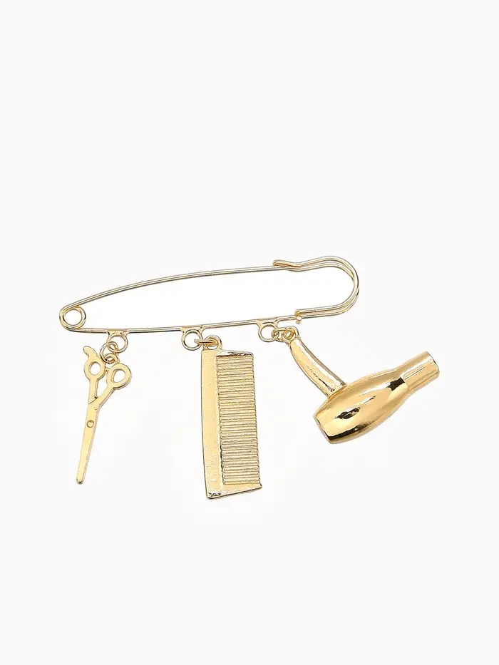 Булавка с подвесками «Парикмахер», 5.5 см, цвет розовое золото