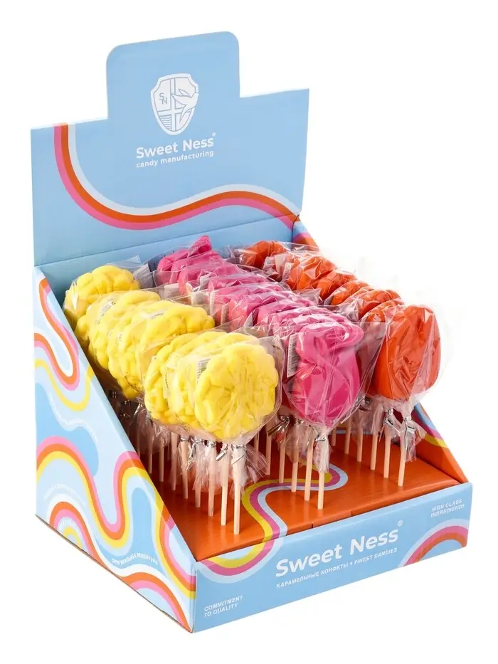 - Удобный формат на палочке: Леденец на палочке удобно есть, не пачкая рук. Это делает его идеальным угощением для фуршетов, вечеринок, прогулок или поездок. Карамель в индивидуальной упаковке сохраняет свою свежесть и аромат.